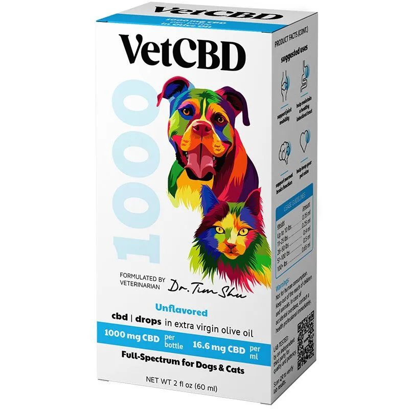 1000 mg Tincture is the best CBD for dogs and cats daily and long term use, multi-pet household, and large to giant breeds. VetCBD Hemp, the perfect solution for large and giant breed pets or multi-pet households. This product features a potent 1000mg concentration of full-spectrum hemp extract, meticulously formulated to provide exceptional support for your beloved companions. Whether you’re looking for a daily supplement or a long-term solution, VetCBD Hemp is designed to meet their unique needs. Its comprehensive blend of natural compounds nurtures their overall well-being, promoting calmness, mobility, and optimal health.