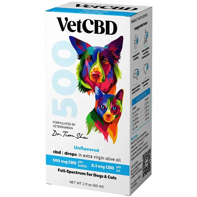 500 mg Tincture for dogs and cats is a premium product specially designed for medium-sized pets in multi-pet households. This formula contains 500mg of full-spectrum hemp extract, with a concentration of 8.3mg CBD/ml, ensuring your pets receive optimal benefits. VetCBD Hemp supports their mobility, calming needs, as well as gastrointestinal and brain health. Whether used daily or for long-term support, our high-quality hemp extract works harmoniously with their body, promoting overall wellness. VetCBD Hemp is the perfect addition to your pets’ routine, providing natural support for their active and balanced lifestyle.