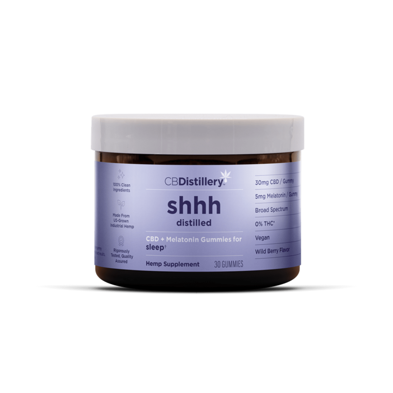 Drift into restful sleep with CBDistillery CBD Melatonin Sleep Gummies 30mg Wild Berry. Each gummy blends 30mg CBD and 5mg melatonin. Additionally, the wild berry flavor makes nightly relaxation delicious. Start tonight and wake up refreshed.