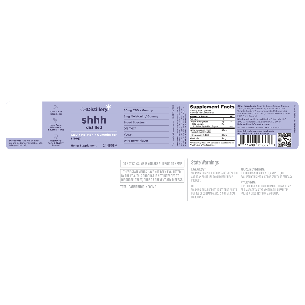 CBDistillery CBD + Melatonin Sleep Gummies 30mg – Wild berry