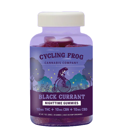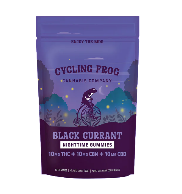 Cycling Frog Gummies Black Currant 10MG THC 10MG CBD 10MG CBN support easy nighttime relaxation. They taste bold, yet they still feel soothing. Moreover, the balanced formula helps your mind and body wind down. Expect calm, comfort, and steady nighttime support.