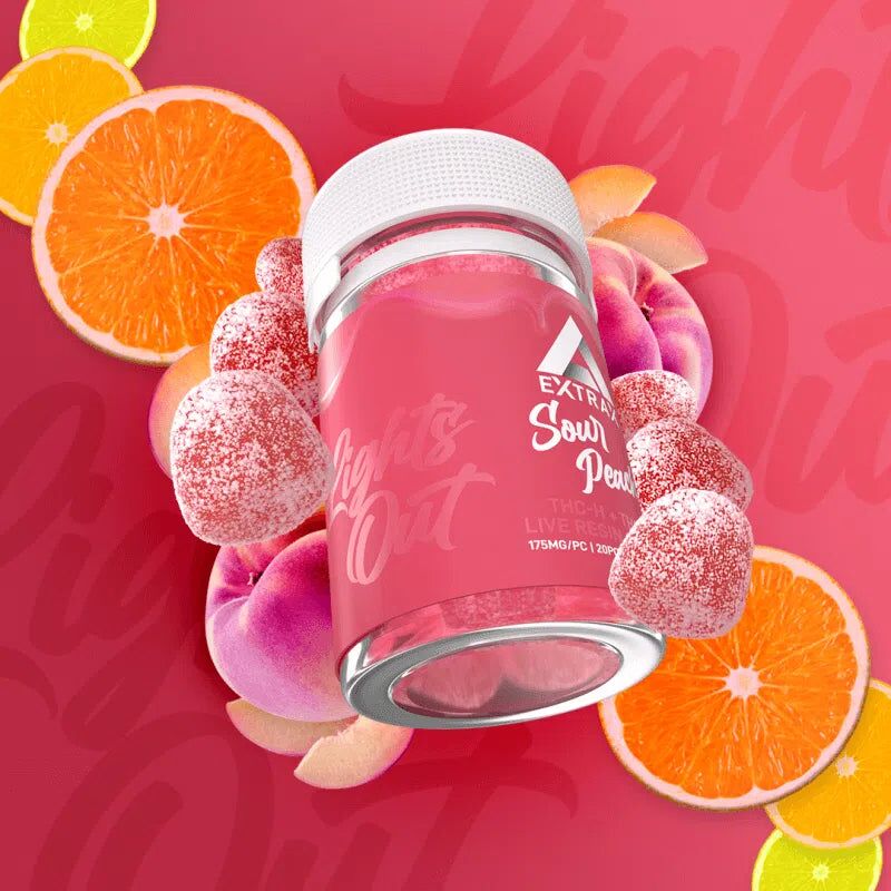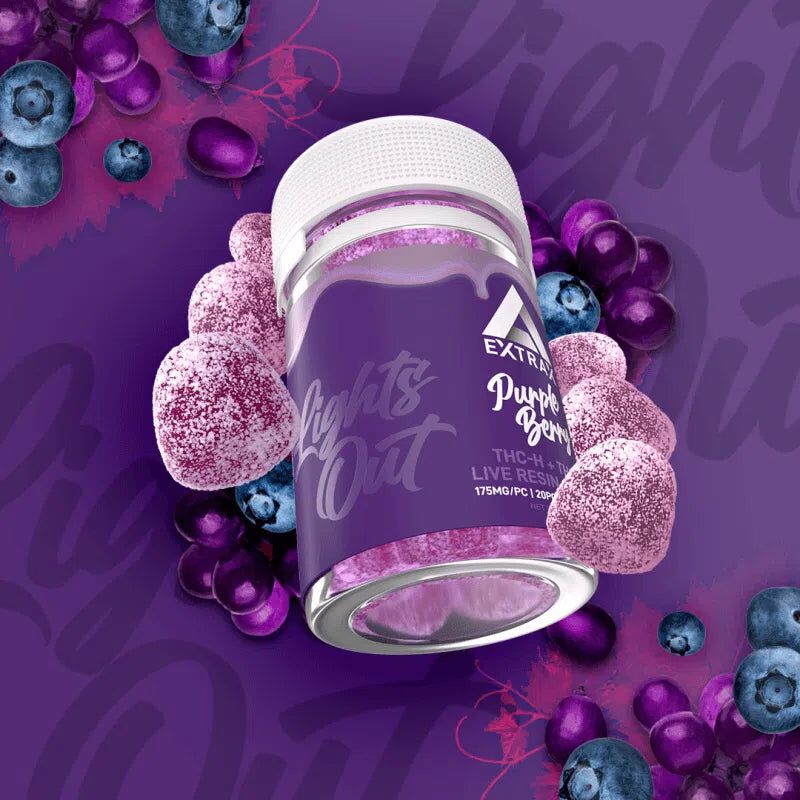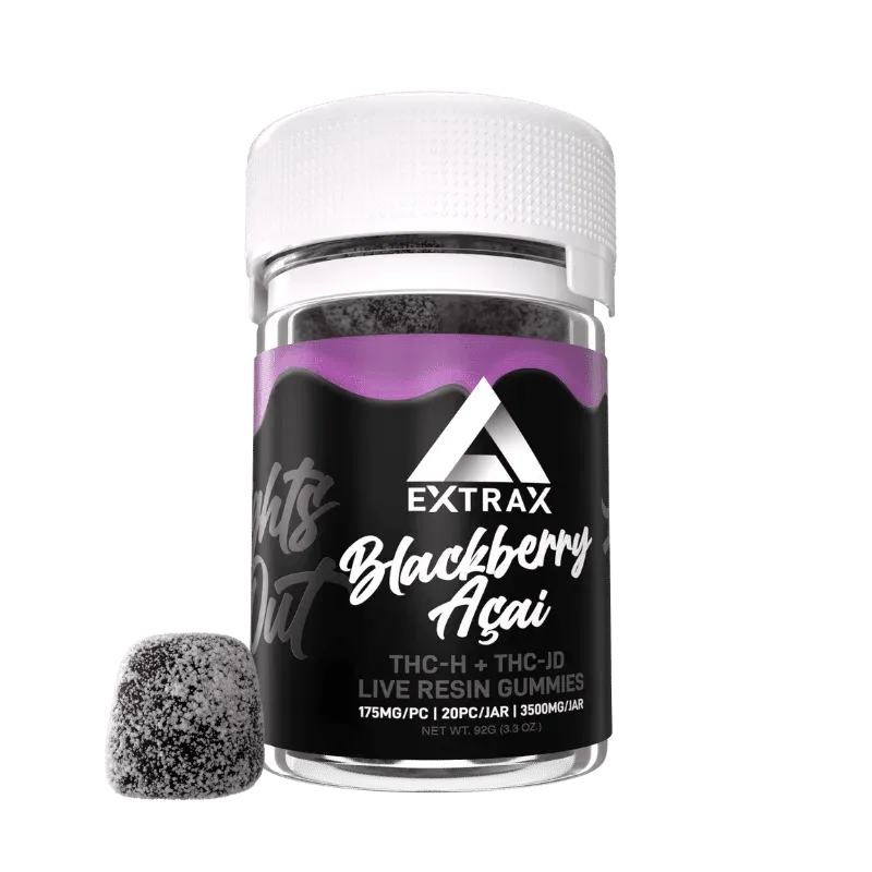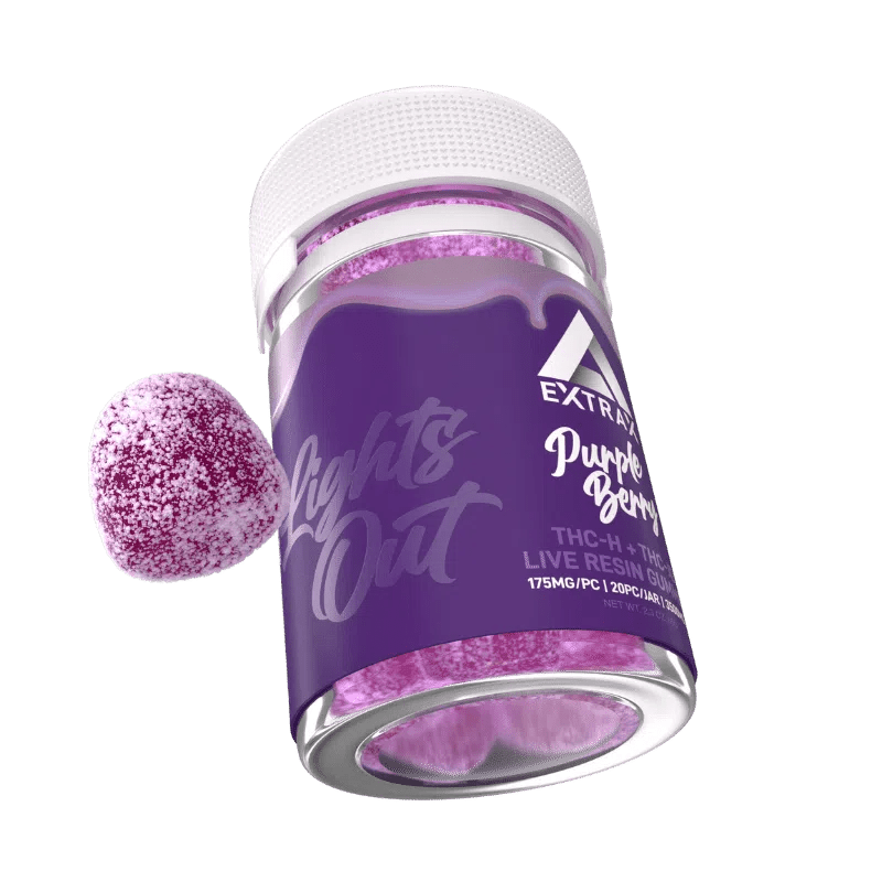 Turn down the lights and enjoy our bestselling Delta Extrax 3500mg Lights Out Blend Gummies! Each jar contains 20 gummies, each packed with 175mg of our powerful THCjd + THCH blend, totaling 3500mg of THC goodness.