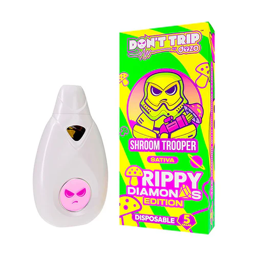 Don’t Trip by Dozo Trippy Diamonds Disposable 5g brings high potency and epic flavors in a sleek device. It’s fully pre-charged and ready for action. Enjoy powerful effects with no mess, no stress—just good vibes.