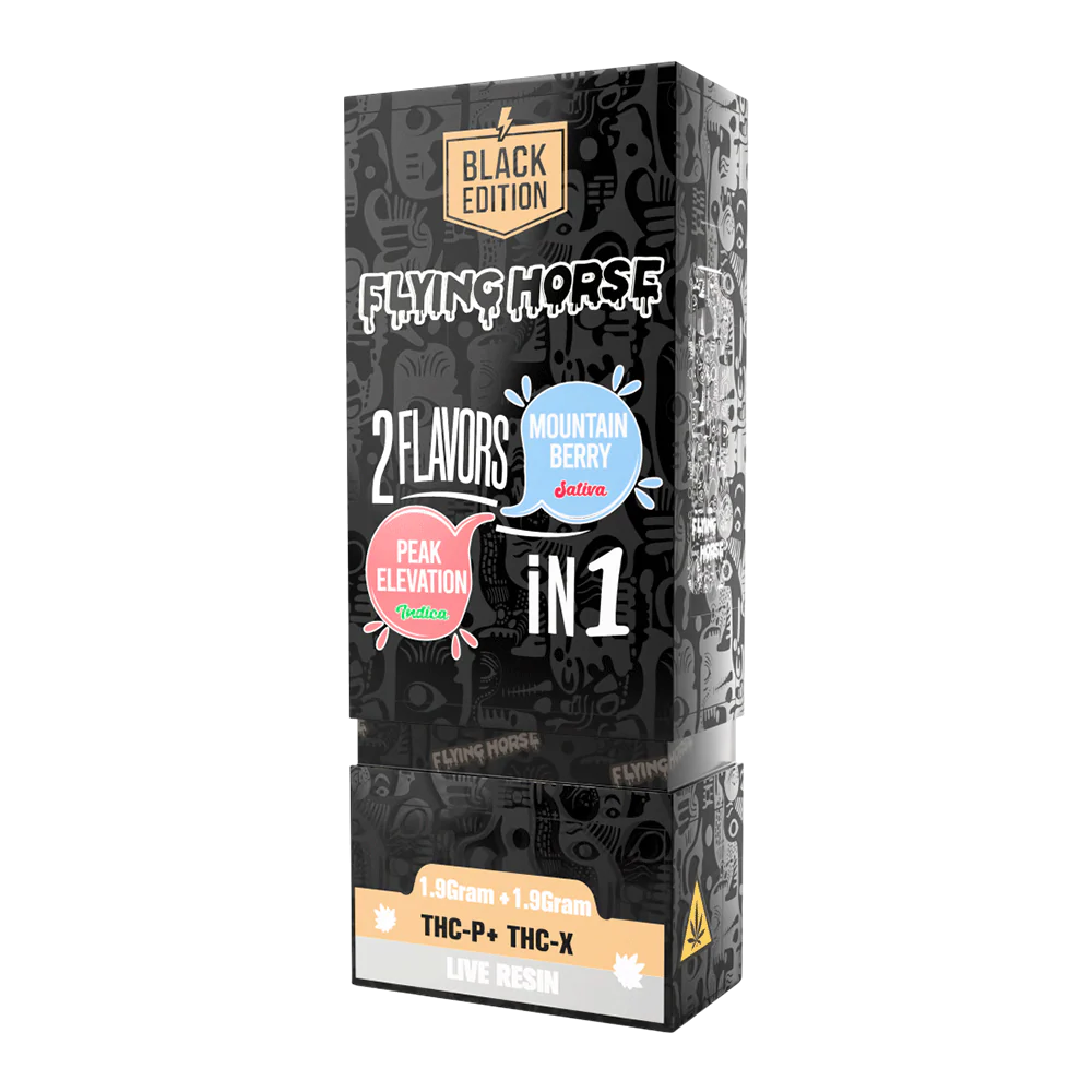 Elevate your vaping experience with the Flying Horse Black Edition 2in1 Disposable Mountain Berry Peak Elevation 3.8. This dual-chamber live resin vape combines Mountain Berry’s sweet, wild berry notes with Peak Elevation’s refreshing, high-altitude rush. Instantly switch between uplifting sativa energy and balanced hybrid relaxation.