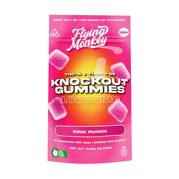 The Flying Monkey Knockout Delta9 THCA THCP Gummies 10000mg pack serious flavor and power in every bite. Each gummy delivers 500mg of a potent blend that elevates mood and eases tension.