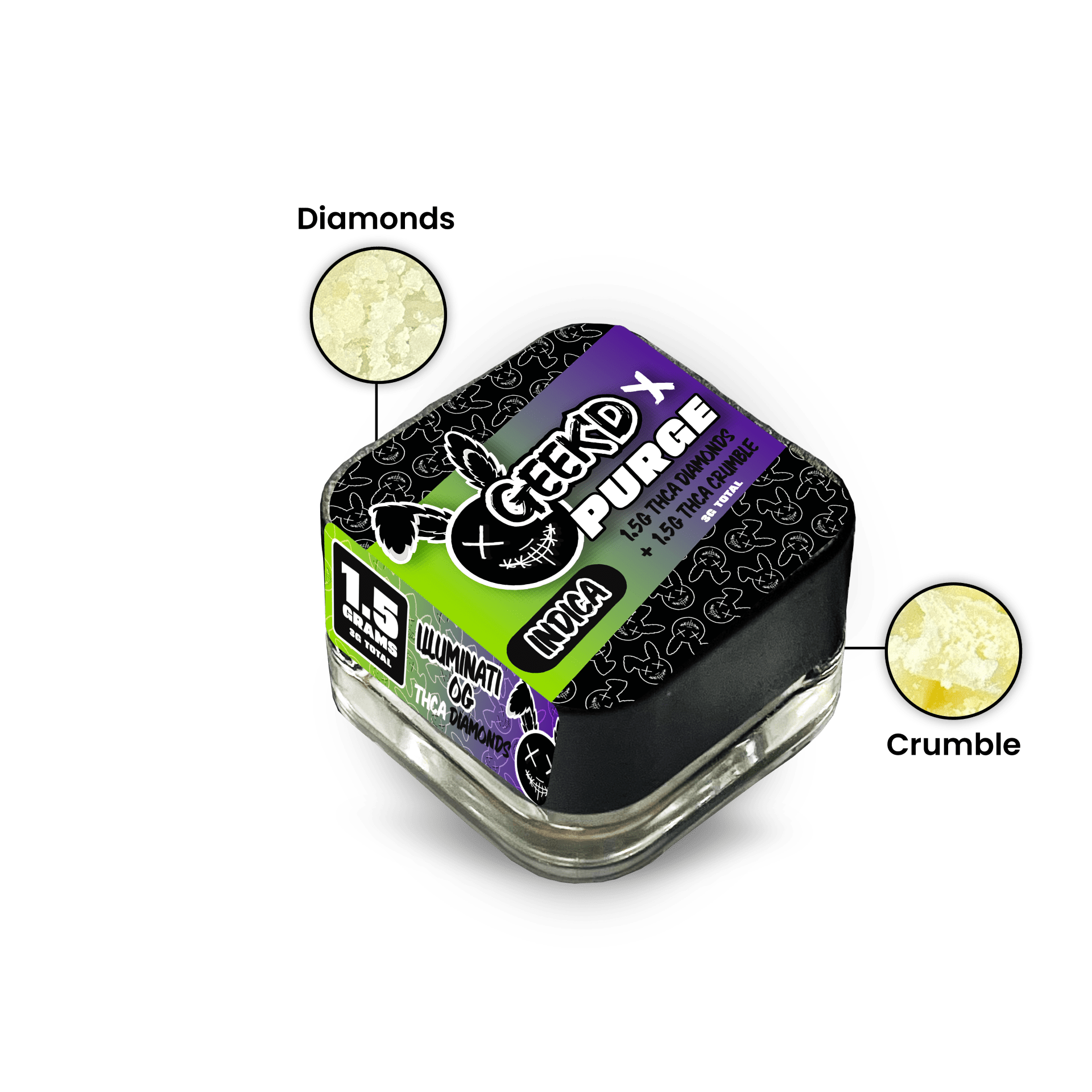Geek’d x Purge THCa Diamonds + Crumble 3G Illuminato OG x Strawberry Cheesecake (Indica)
