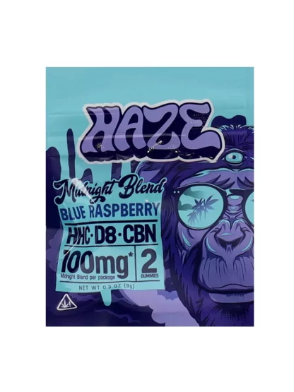Haze 2ct Midnight Blend 100mg D8 CBN Gummies Blue Raspberry Indica deliver a sweet way to relax. Each gummy combines HHC, Delta-8, and CBN for soothing nighttime effects. Enjoy a smooth blue raspberry flavor and wake up refreshed. Order now and unwind with ease.