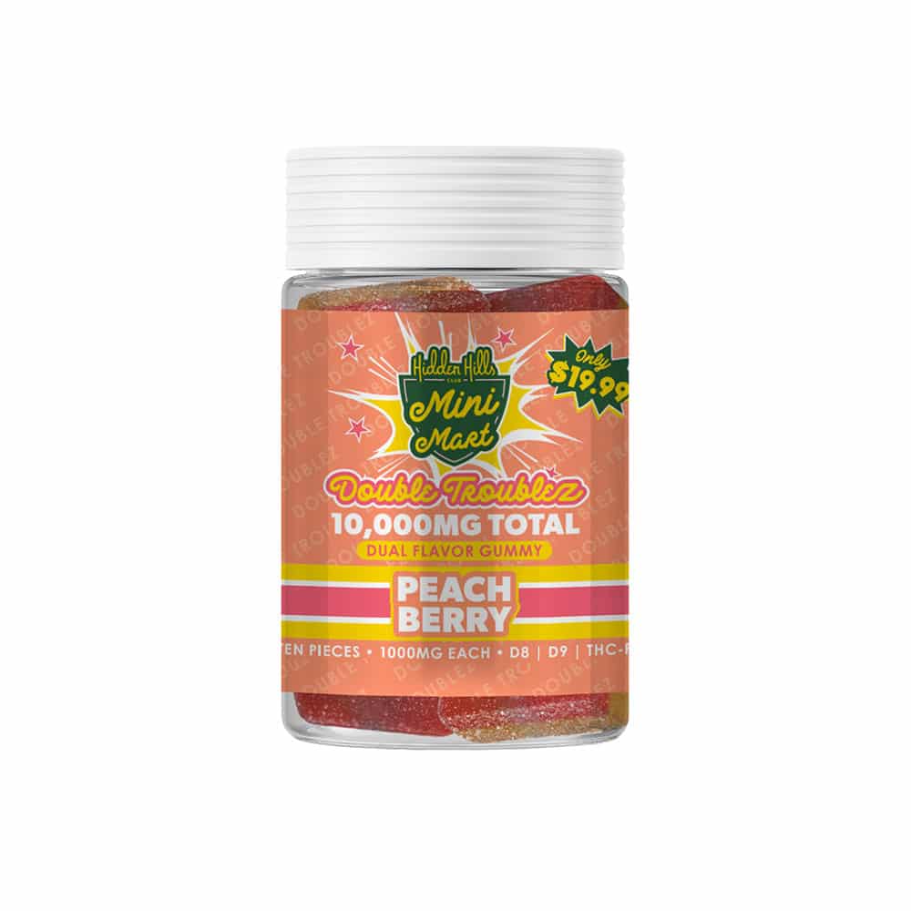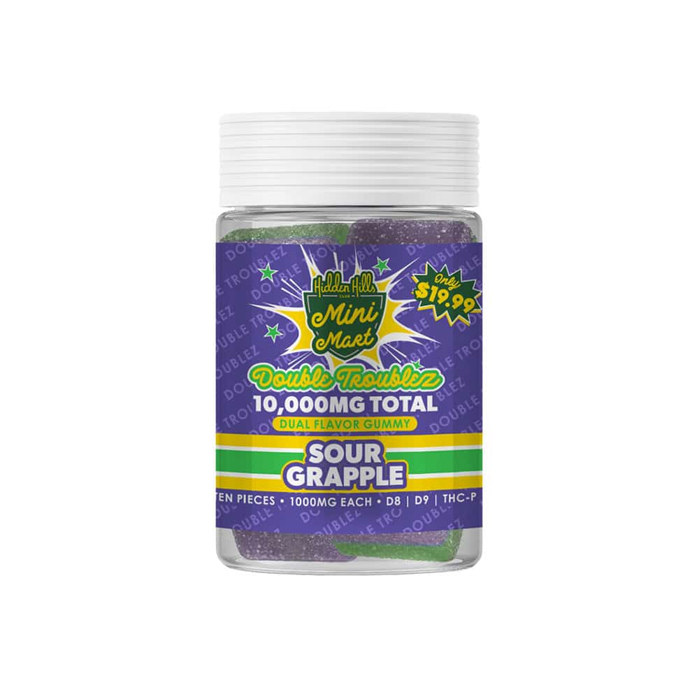 Hidden Hills Mini Mart Double Troublez Gummies 10000mg pack serious strength for experienced users who want bold effects. You enjoy a trio of powerful cannabinoids that work together for a strong and long-lasting buzz.