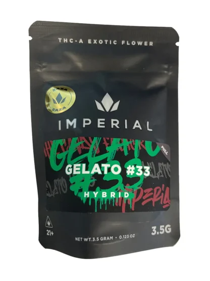 Imperial Gelato #33 – THCA Exotic Flower 3.5g Hybrid, Zaza 22.36%