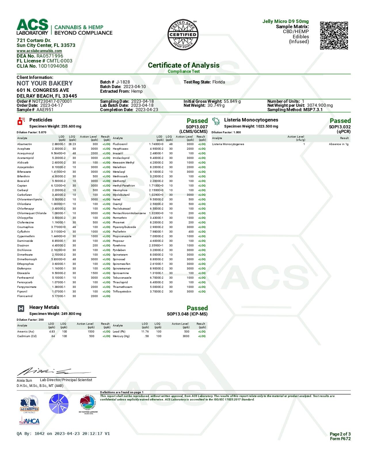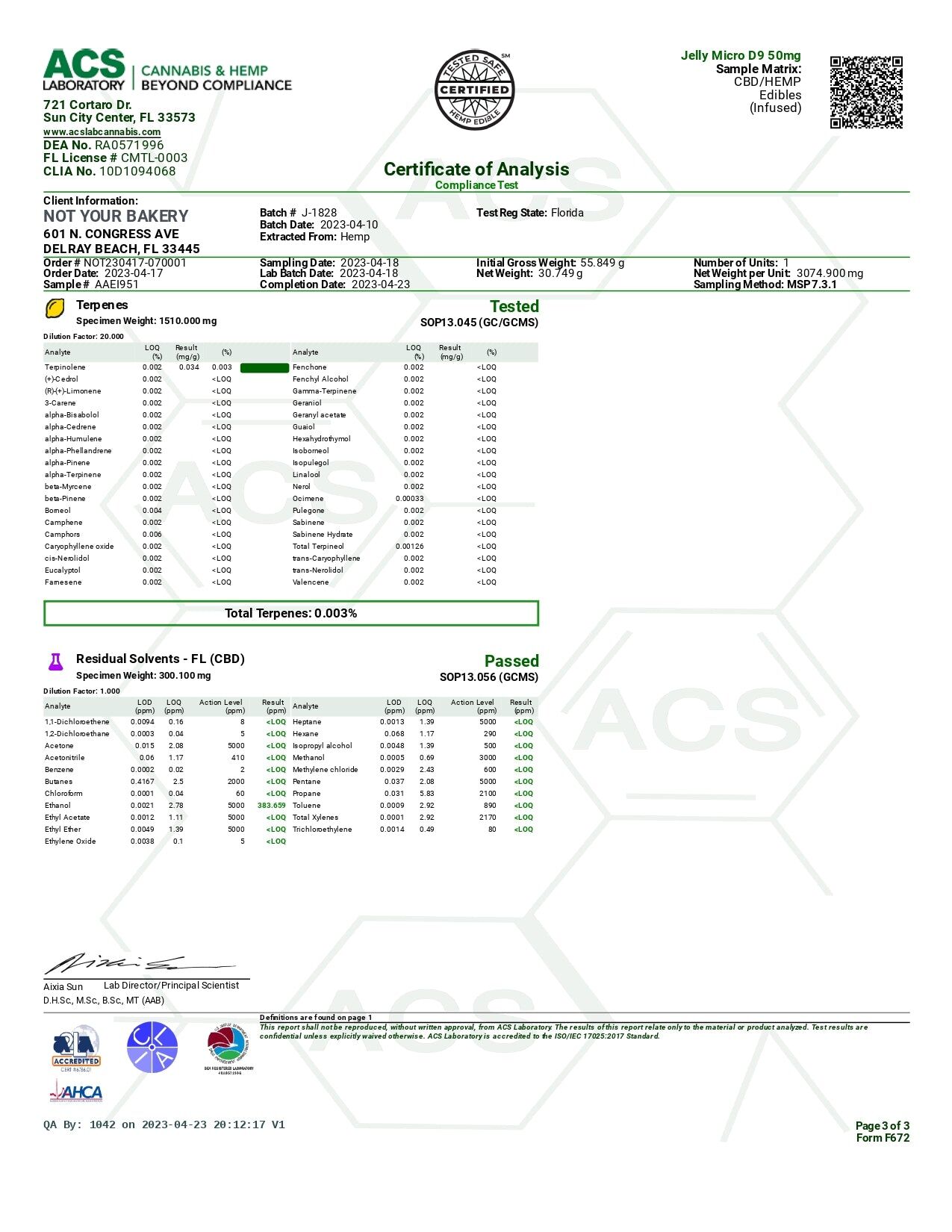 Cane sugar, light corn syrup, pectin, less than 2% citric acid, natural and artificial flavor, hemp extract, MCT oil from palm.