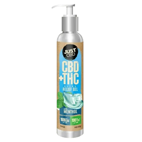 Ease discomfort fast with Just CBD CBD+THC Ultra Relief Gel with Menthol. This premium topical combines 1000mg or 5000mg of hemp-derived CBD with 100mg of Delta-8 THC for enhanced relief. Alongside the power of 5–6% menthol and 2% camphor, this gel delivers an icy-hot sensation that quickly comforts sore muscles and joints.