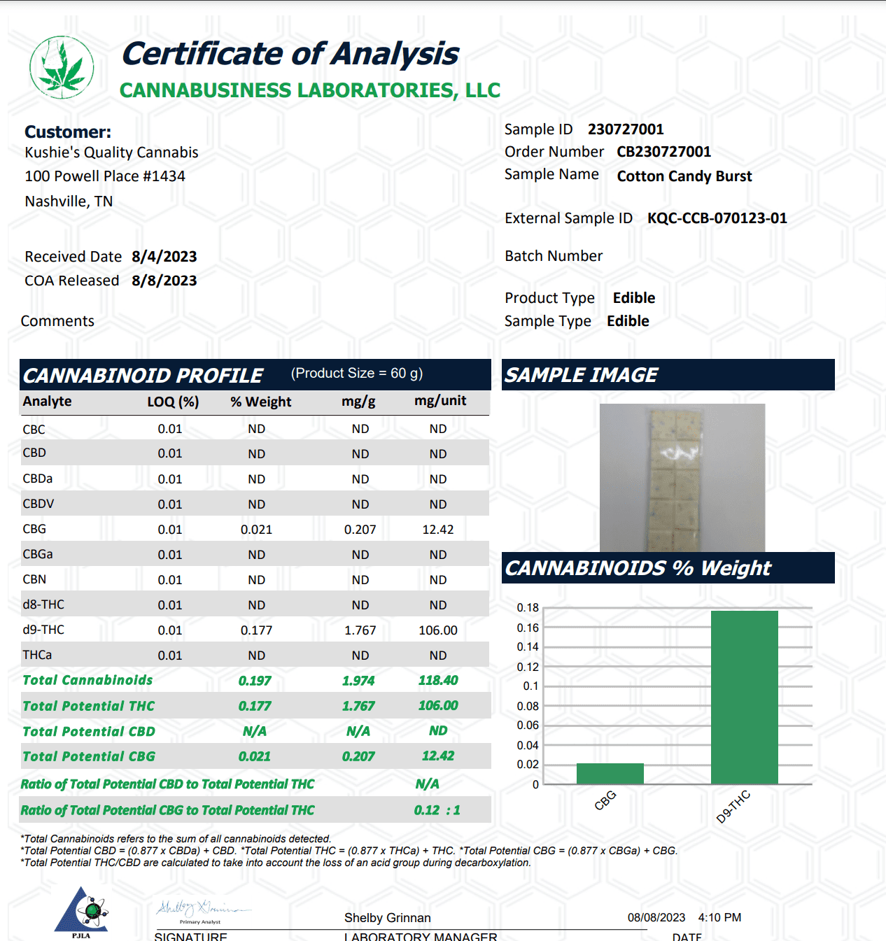 Kushies Chocolate Bar Features: