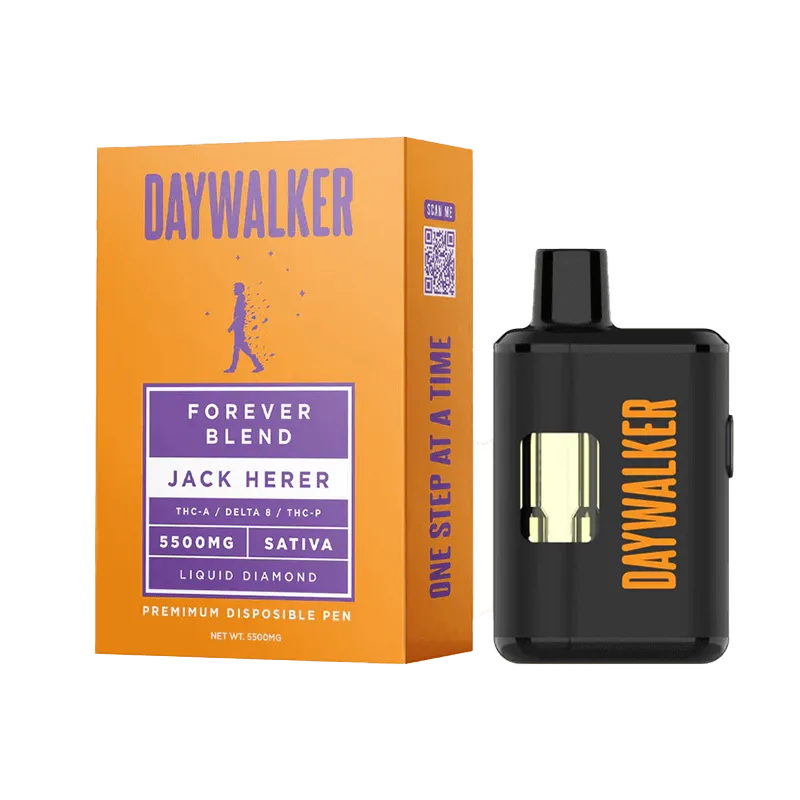 Carrying an industry-leading 5.5 grams of THC-rich vape juice, Daywalker’s liquid diamond pens are disposable and rechargeable, so you can enjoy their potent vape juice until the last drop. And this vape juice is pretty powerful. With heavy hitters like THC-A, delta 8, and THC-P, this liquid diamonds pen boasts strong psychoactive effects.