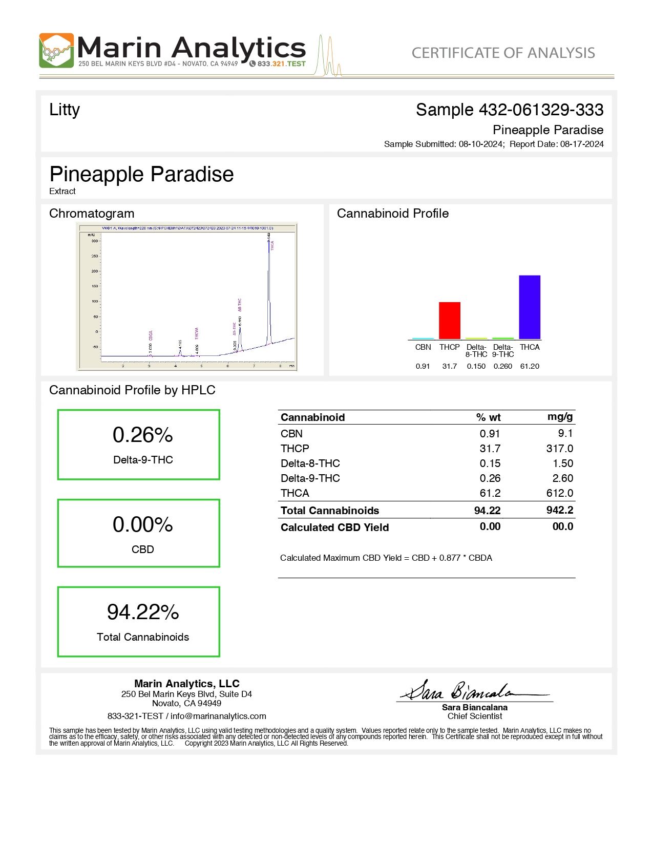 | Flavor | Pineapple Paradise (Hybrid), Baja Blast (Sativa), Cotton Candy (Indica), Watermelon Pop (Hybrid), Starwberry Lemonade (Sativa), Pineapple Nectar (Indica), Raspberry Lime (Indica) |