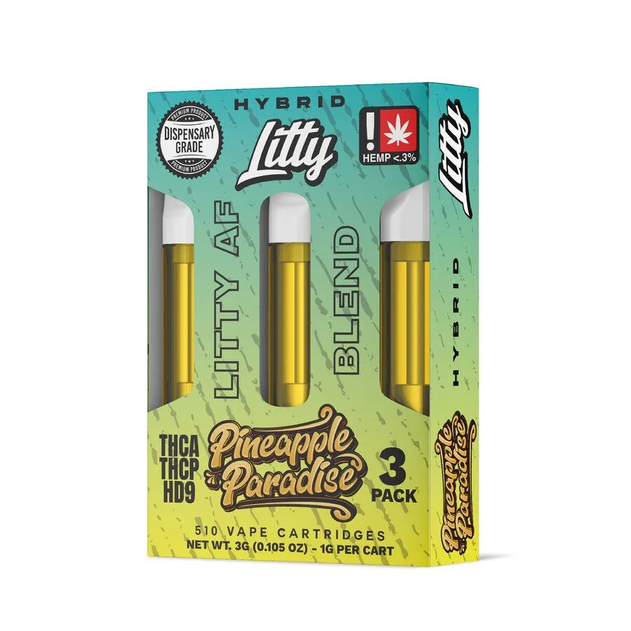 Experience the bold flavors and smooth potency of Litty AF Blend THCA Vape Cartridge 3pk—a premium 3-pack designed for pure satisfaction. Packed with THCA, THCP, and HD9, these 1g cartridges deliver a powerful, flavorful vaping experience in Indica, Sativa, and Hybrid strains. With six unique flavors, enjoy a mix of tropical, fruity, and sweet blends, all crafted for a satisfying session.