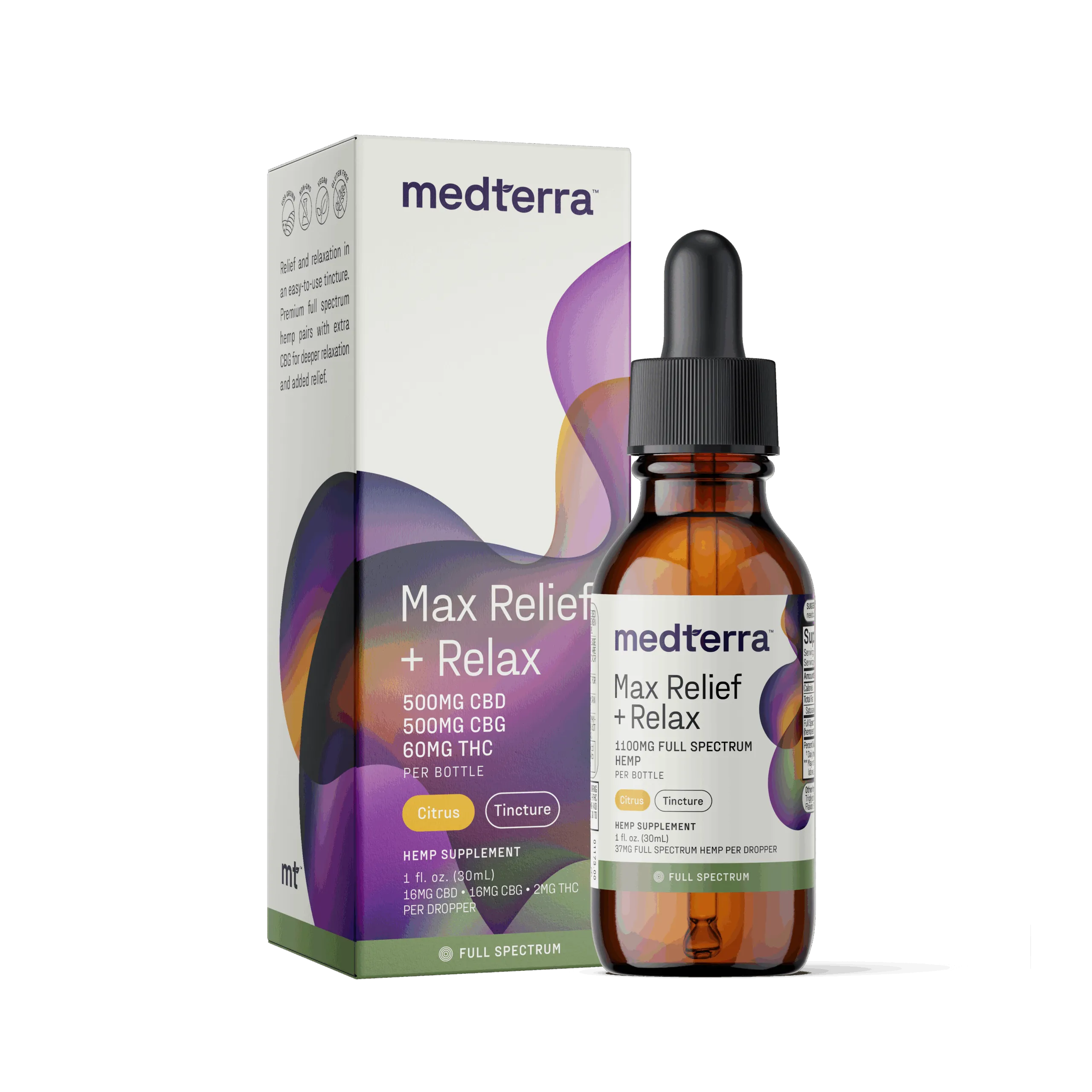 Medterra Max Relief + Relax Oil Tincture CBD + CBG + THC | Full Spectrum | 1 fl oz (30mL)