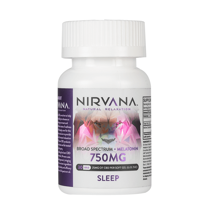 Nirvana CBD Broad Spectrum CBD Melatonin Softgels 750mg support restful sleep with 25mg CBD and 1mg melatonin per capsule. Since they’re broad-spectrum and THC-free, they offer natural calm without the high. Simply take one before bed and wake up refreshed. Add to your nightly routine today.