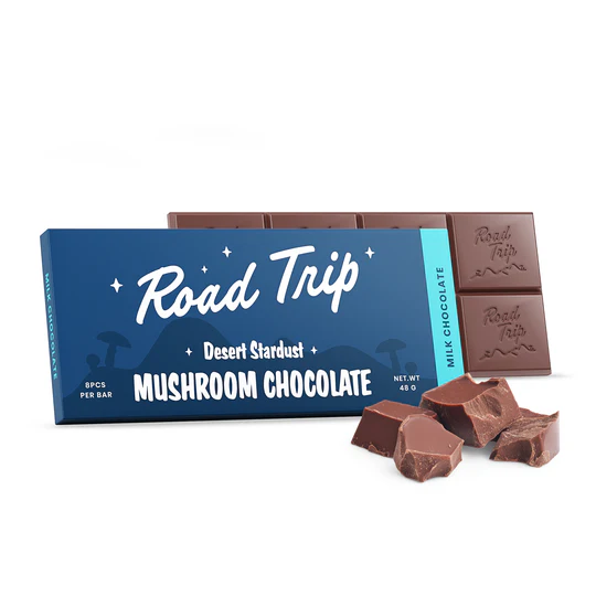 Discover the magic of Road Trip Desert Stardust Magic Mushroom Chocolate Bar – your delicious ticket to a mind-expanding experience. Every bar blends premium chocolate with our signature Desert Stardust mushroom extract to create a flavorful adventure like no other. Designed for microdosers and psychonauts alike, each bar comes in 8 evenly dosed pieces to suit your journey.