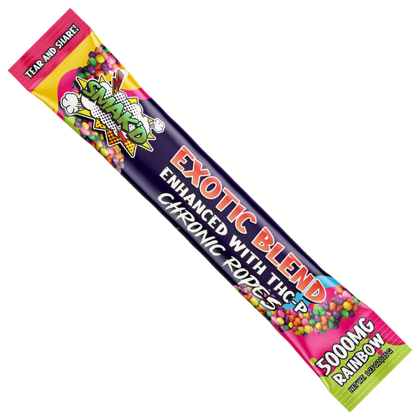 Get up and go on a flavorful adventure with Smak’d Rainbow Exotic Blend Chronic Ropes. Packed with 5000mg of premium Exotic Blend cannabinoids, these vibrant and fruity Nerd Ropes are individually wrapped for freshness and perfect for on-the-go enjoyment or sharing.