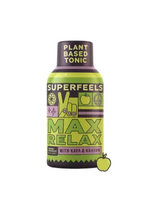The Superfeels Max Relax Shot Kava & Kratom Extract Tonic 2oz delivers calm in a simple, drinkable format. It combines botanical extracts with a smooth apple taste. As a result, relaxation feels natural and controlled.