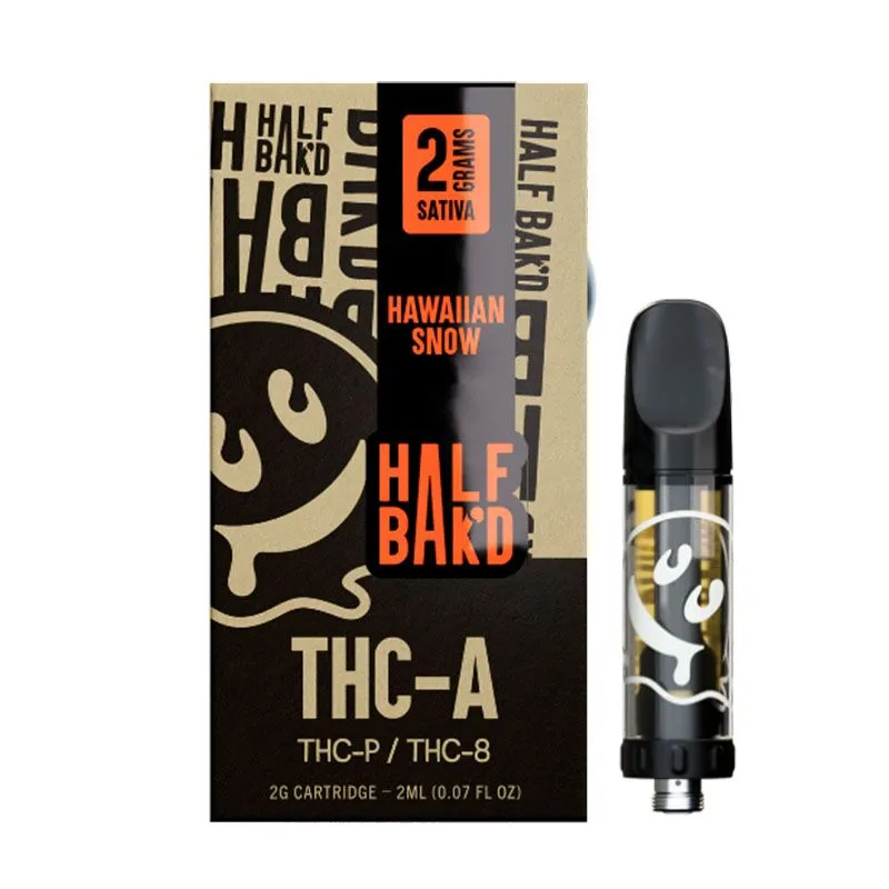THC-A Vape Cartridge with Delta 8 + THC-P – Hawaiian Snow – Sativa 2g – Half Bak’d