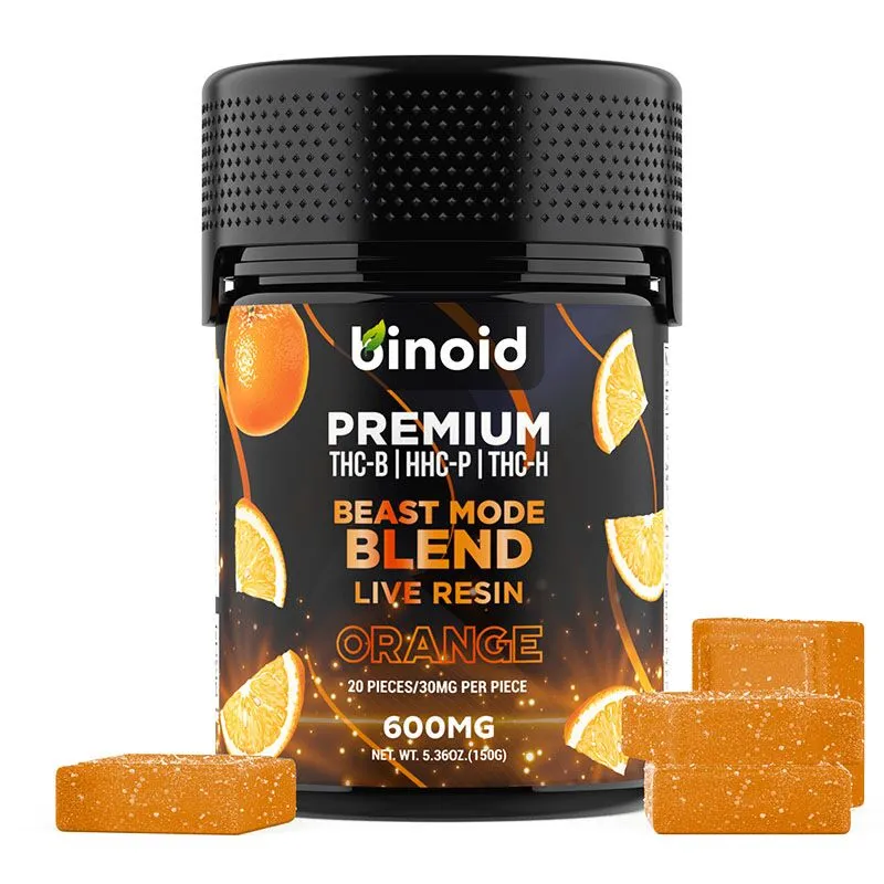 Live Resin Beast Mode Blend THC Gummies with THC-B + THC-H + HHC-P – Orange – Binoid