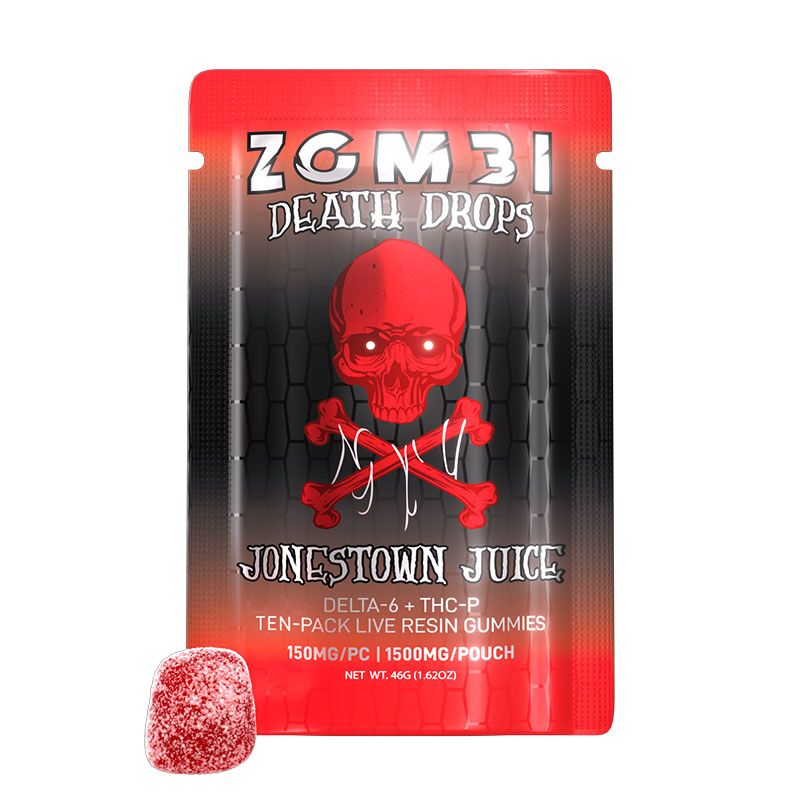 Live Resin Death Drop THC Gummies with Delta 6 + THC-P – Jonestown Juice – Zombi