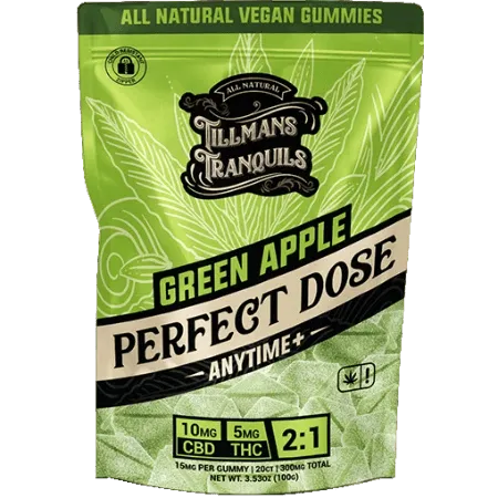 These gummies were formulated and crafted for anytime use. For those seeking a 2:1 ratio of d9 thc to cbd, our Green Apple Gummies are a stronger ratio, than our other Perfect Dose gummies.
