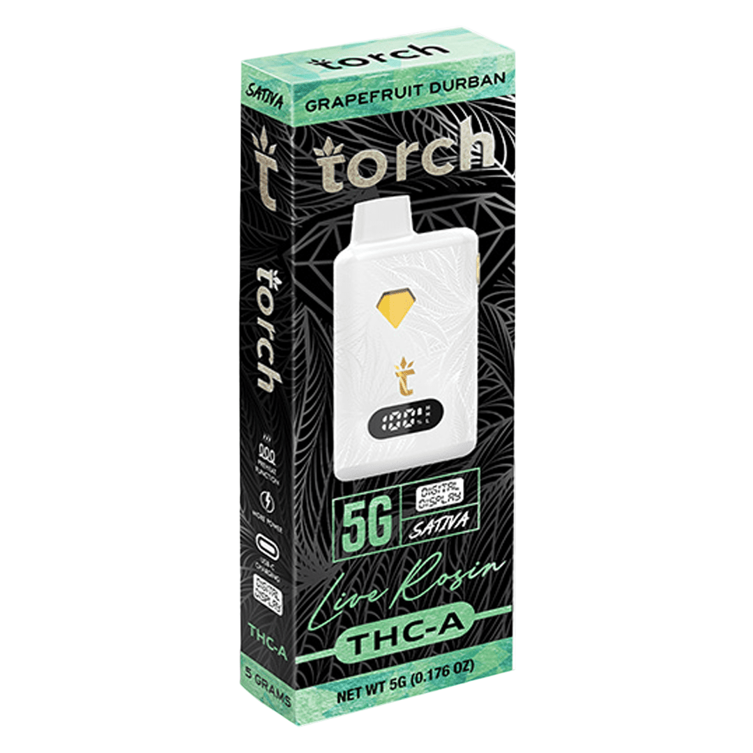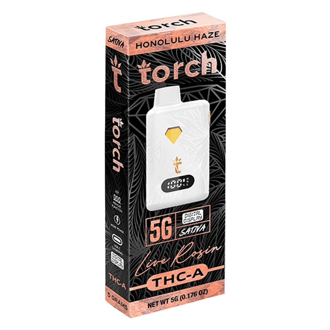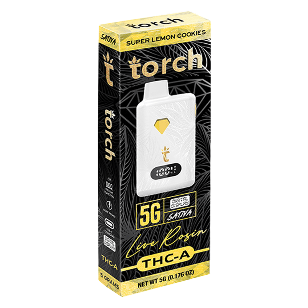 Torch Live Rosin THCa Disposables are here, packed with a powerful 5g blend for a delicious vaping experience. These disposable vapes come in 10 different strain options, each with its own unique flavor.